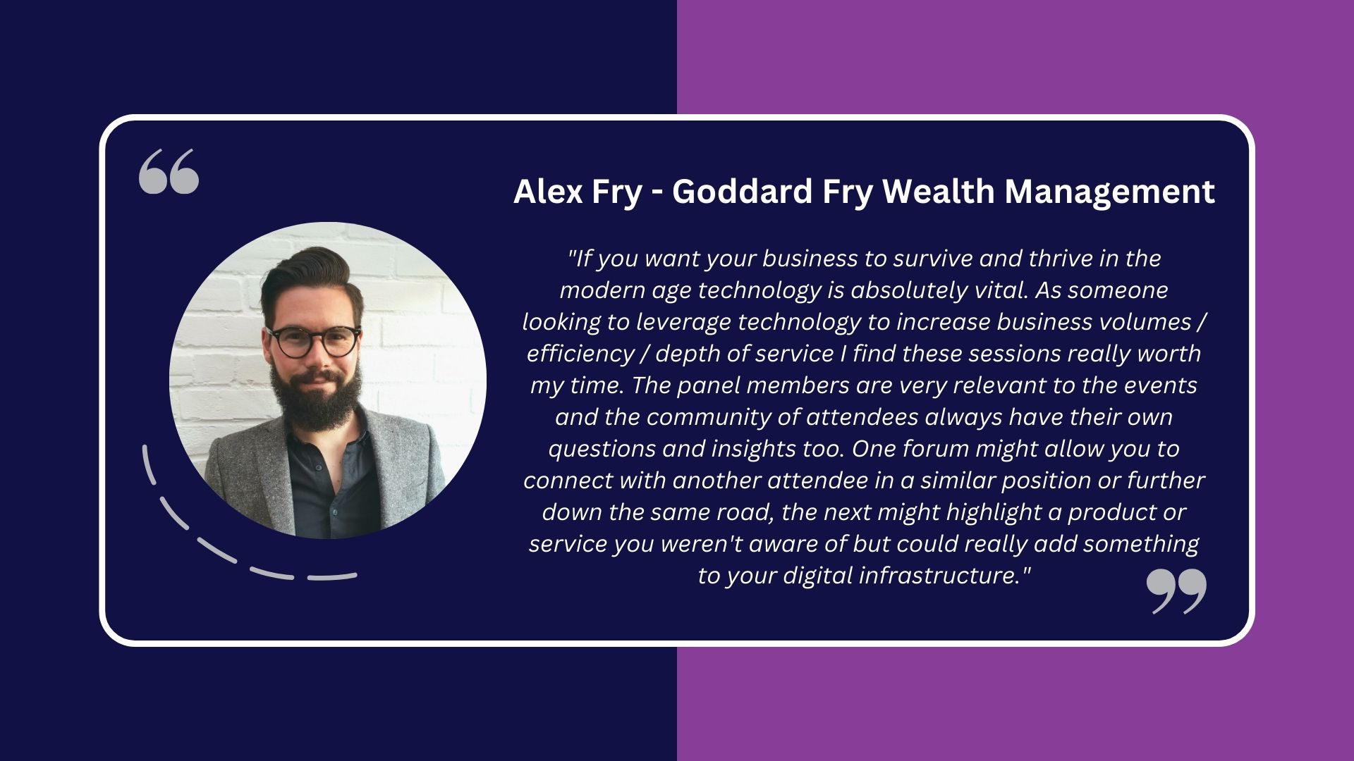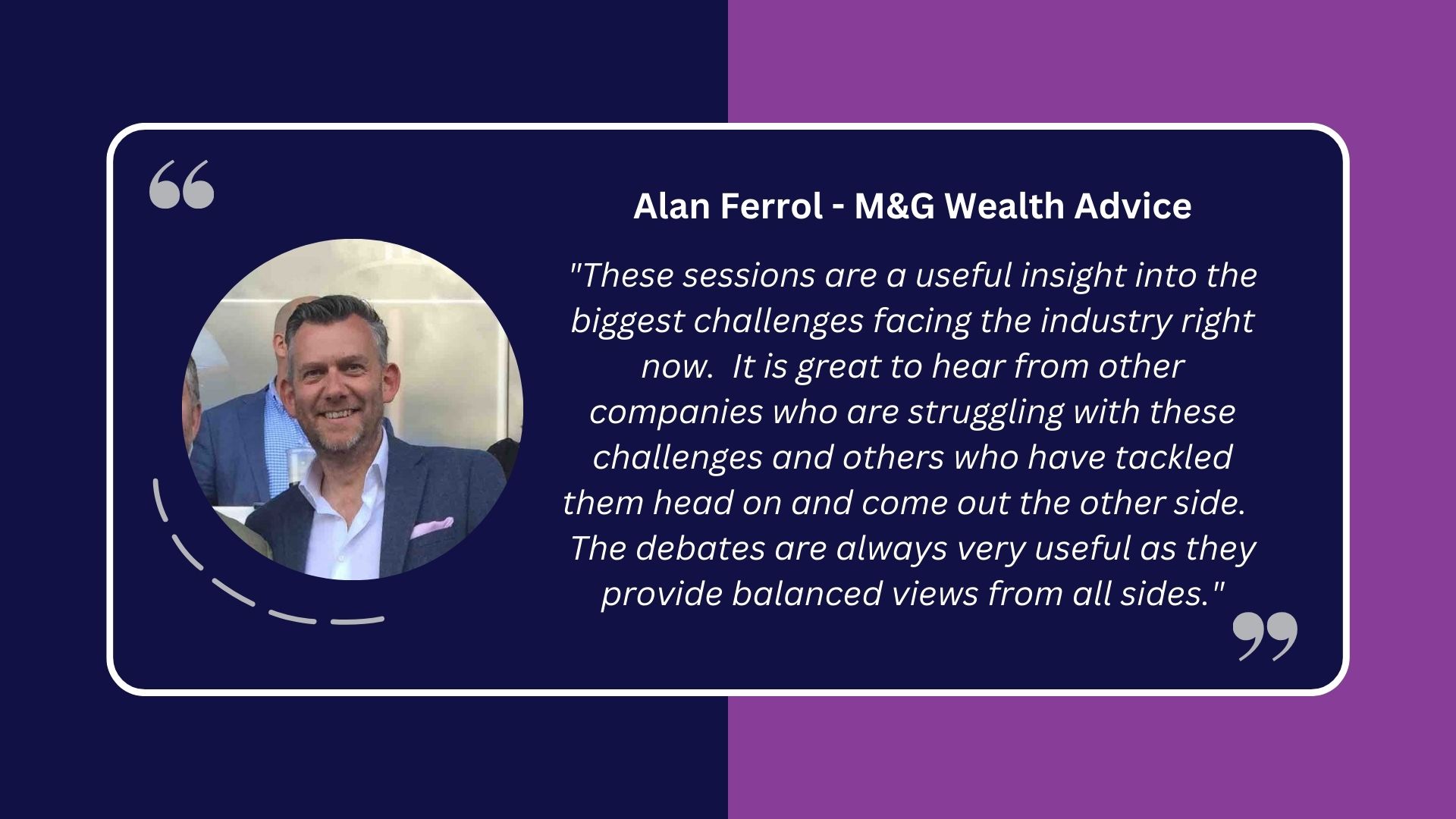 Network with like-minded industry professionals and engage with expert panellists and participate in creating positive change in wealth management from the comfort of your own home.